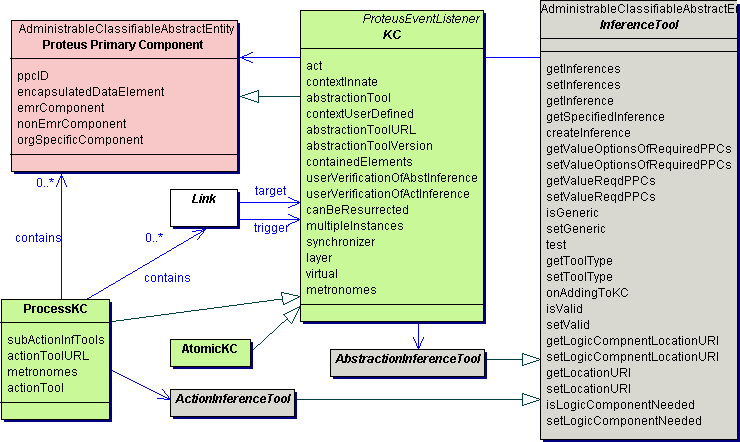 Since the guidelines represent clinical processes, representations of other processes in healthcare that are dependent on the clinical processes may be linked to the guidelines. Examples of such processes are billing, supplies, administration, nursing, etc. Each such process can be represented as a layer parallel to the core clinical process and its components have representation similar to KCs in the clinical process with which they are linked. Proteus thus provides a mechanism to construct complete healthcare information systems in which each part is logically related to another. Moreover, since any number of layers can be added, the system based on Proteus has unlimited extensibility.